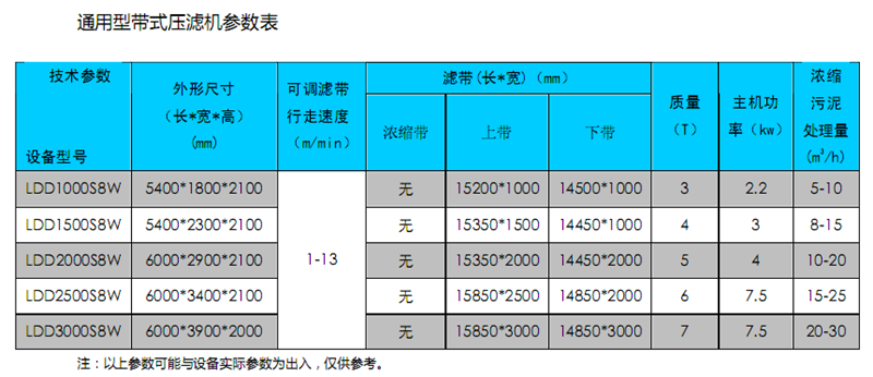 通用型帶式壓濾機可應用于各種污泥脫水處理,是常見(jiàn)的機型??蓮V泛應用于各種污泥脫水處理,如造紙、印染、電鍍、陶瓷、皮革、城市生活污水、化工、電子、尾礦、制砂、洗砂、洗煤等。